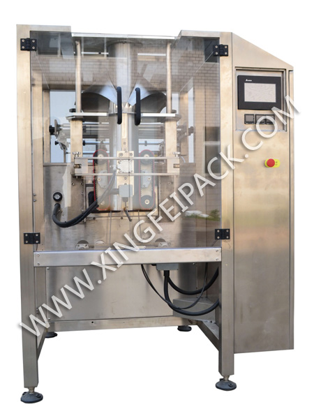 3. 本機(jī)與計量配置可自動完成計量.送料,充填制袋、日期打印、充氣(排氣)、成品輸送的全部包裝過程,并自動完成計數(shù)。