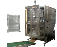 該包裝機(jī)制成的包裝袋在立式袋基礎(chǔ)上增封了四個(gè)角邊,使包裝