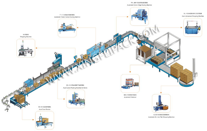 我司可根據(jù)不同產(chǎn)品及要求設(shè)計(jì)定制整條紙箱包裝線,從紙箱成型到后面碼垛纏繞膜包裝。適用于瓶裝,袋裝,罐裝等產(chǎn)品。歡迎來信來電咨詢。